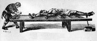 Jednak najbardziej znienawidzonym przez torturowanych i budzącym postrach narzędziem tortur było Łoże Sprawiedliwości, czyli ława, na której kładziono skazańca z unieruchomionymi rękami i nogami, a następnie rozciągano go aż do rozdarcia mięśni. Część łóżek wyposażono w wałki nabijane kolcami. Do nóg torturowanego przywiązywano 50-funtowy ciężar, który miał służyć lepszemu wyciąganiu stawów. Rozciąganie odbywało się za pomocą specjalnego kołowrotka zainstalowanego u wezgłowia pryczy. Często kat stosował tortury dodatkowe, polegające na ześrubowaniu rąk i nóg, podpalaniu ciała, czy szarpaniu rozżarzonymi szczypcami.
